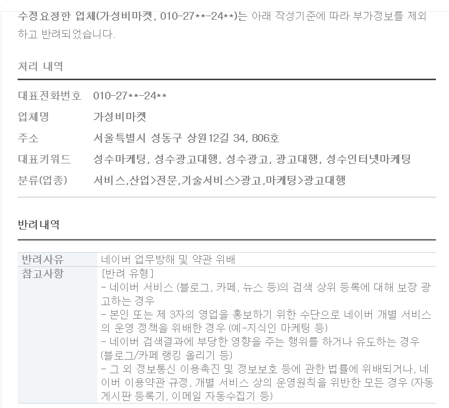 성수짐보관 / 네이버 파워링크 광고 소재 거절 당하는 경우