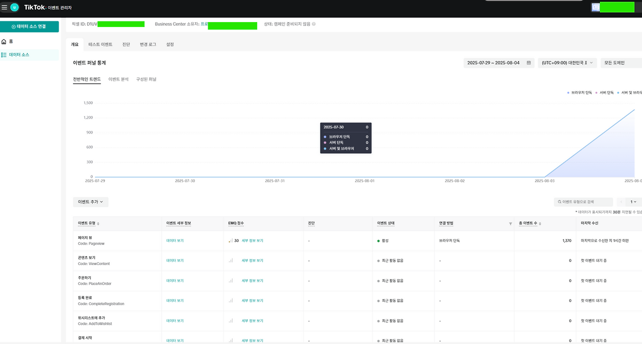 틱톡 판매건수 8.4 / 9건 (정정. 테스트 데이터 미포함일 확률이 높음) / 20780원 광고비 / 6900원 x 9 = 62100 / ROAS 298% 8.5 / 3건 / 8890원 광고비 / 6900 x 3 = 20700 / ROAS 232% > 픽셀 구매금액을 찾지 못해서 보수적으로 모든 구매건당 1건이라고 가정하였습니다. ROAS 230 ~ 500% 추정됩니다 =============================================================== 8.5 - 112건 (IG 73건) (FB 5건) (TIKTOK 28건) (기타 6건) 8.5 TIKTOK 28건 매출 > 20,129원 소진 (보수적 접근 > 6900원 x 28 = 193,200원) ROAS 959%