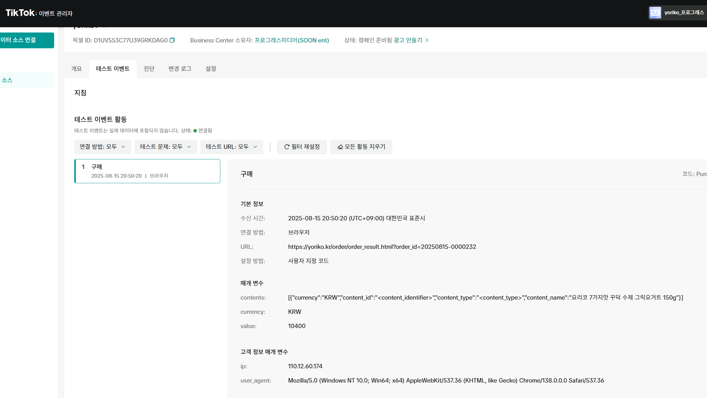 틱톡 상품 요거트 F&B 테스트 cpc12원 / ROAS 959%