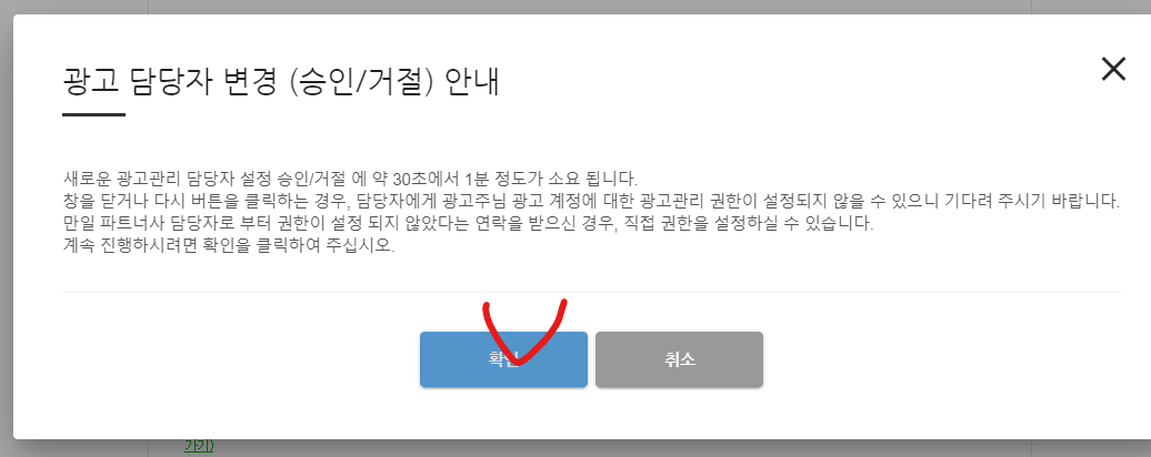 광고 담당자 변경 승인이 뜨는지 반드시 확인해야됨