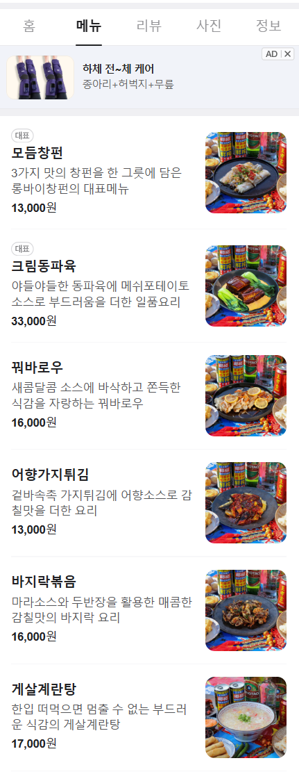 4. 지역 + 음식메뉴