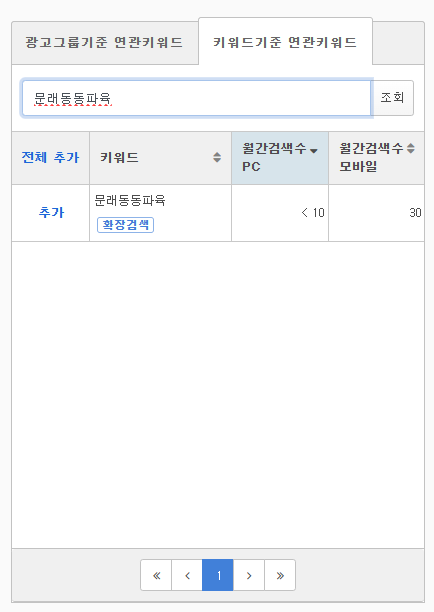 광고그룹기준 연관키워드 월간검색수 정렬 전 / 후