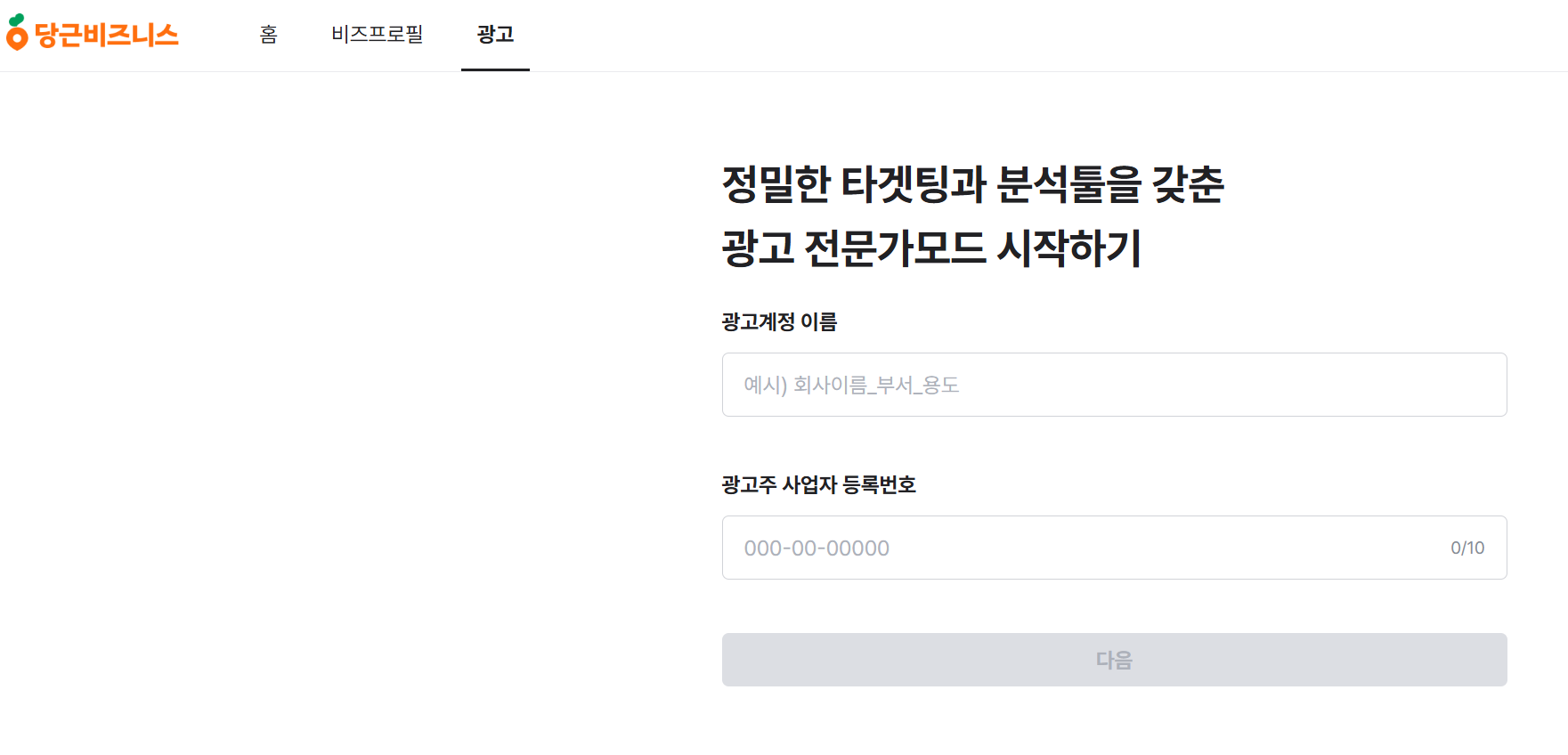 2. https://ads-pro.business.daangn.com/advertiser/create 접속