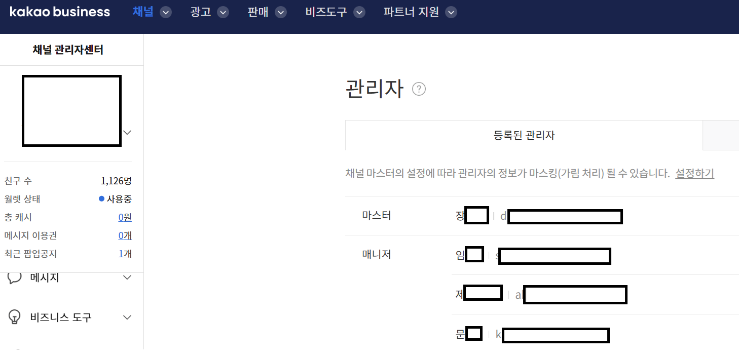 반드시 마스터 권한 있는 사람만 비즈니스 채널 인증 가능함