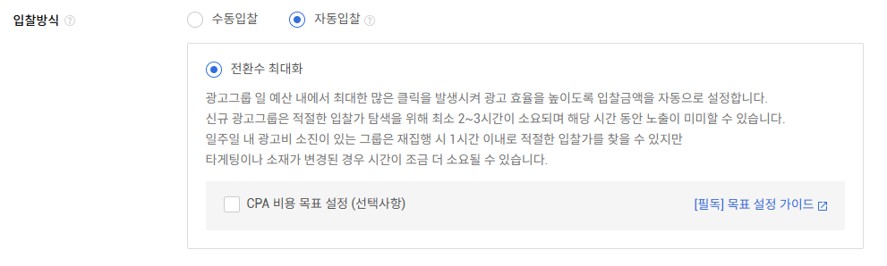 카카오 (카카오모먼트) 수동입찰 CPA CPC CPM