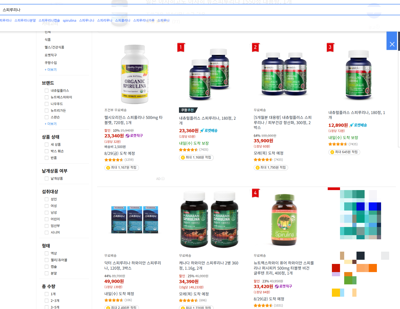 쿠팡 스피루리나 5위