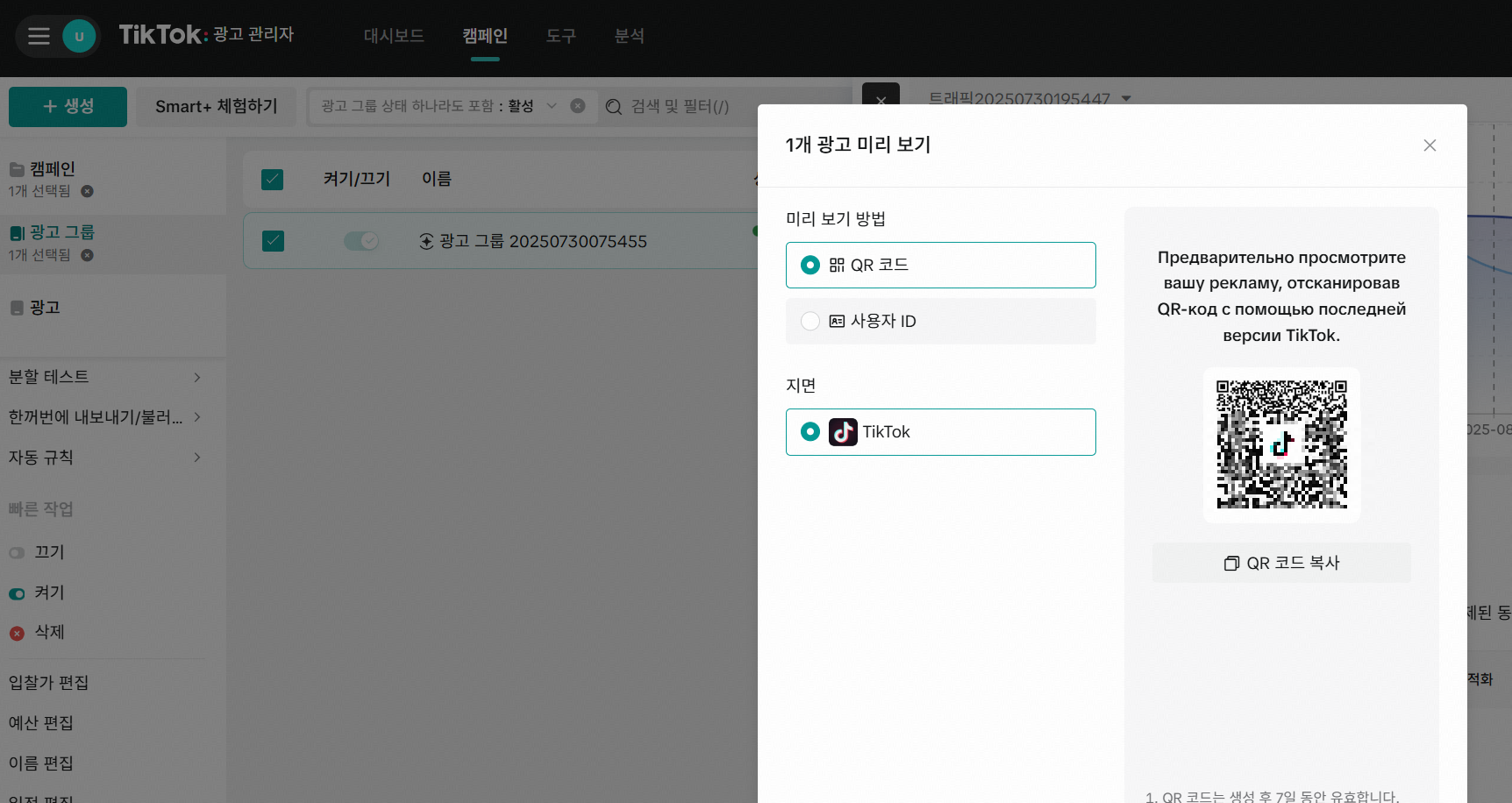 틱톡 계정 추가 통해서 세팅해야 광고 미리보기가 나오는듯