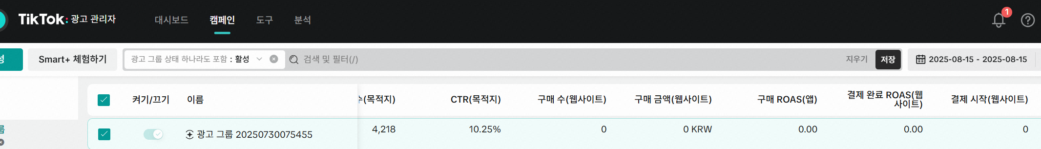 | 틱톡 상품 요거트 F&B 테스트 cpc12원 / ROAS 959% (1) | 2025.08.06 |