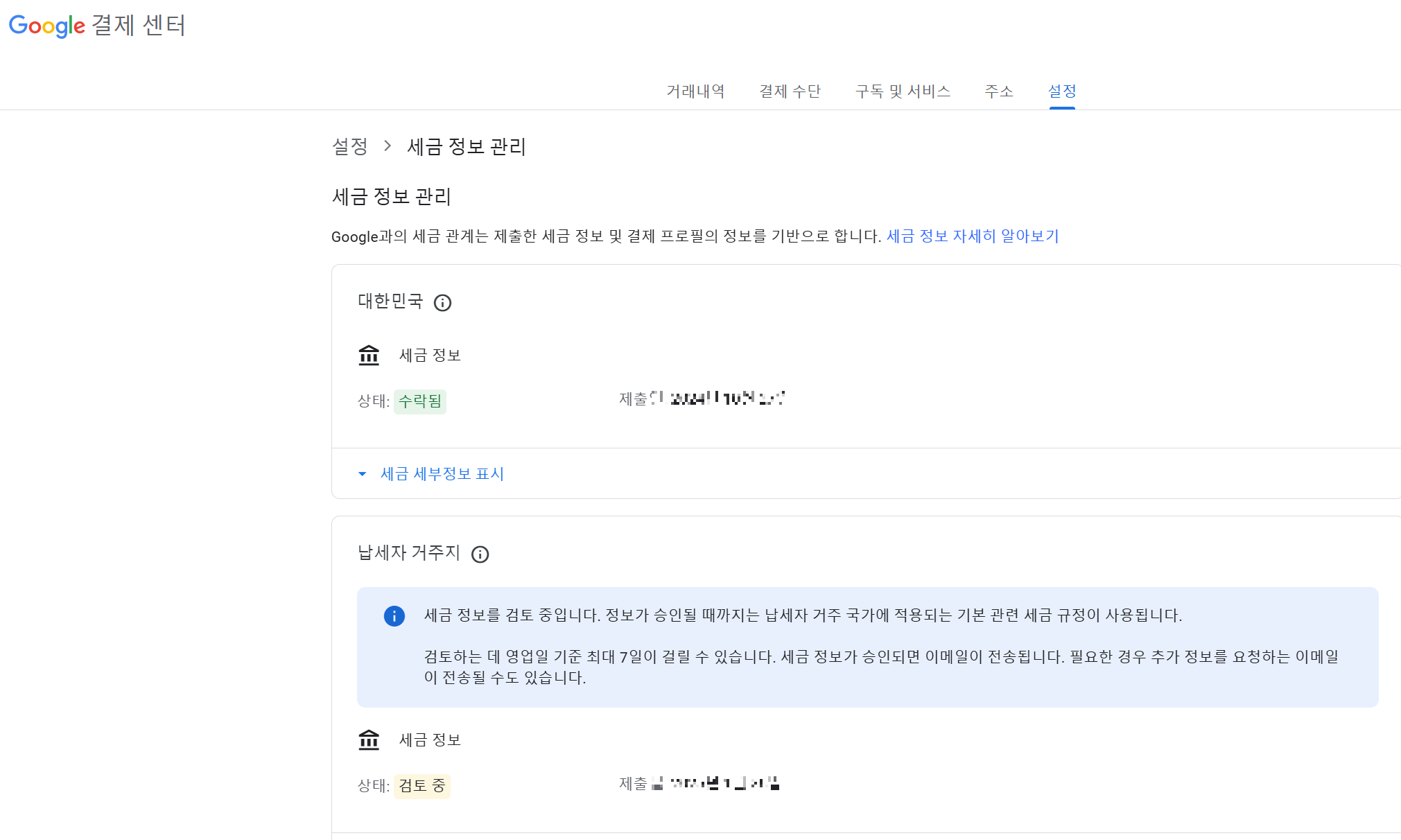 구글 애드센스 (google adsense) 세금 정보 관리 결제 프로필 납세자 거주 국가
