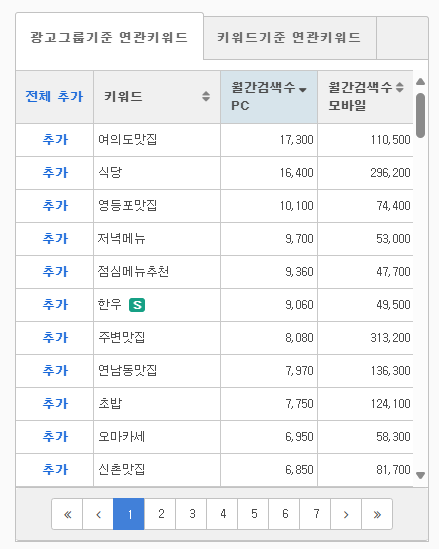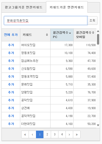 문래동동파육과 같은 키워드는 월간 검색수가 40이여서 무척 작은 것을 알 수 있음