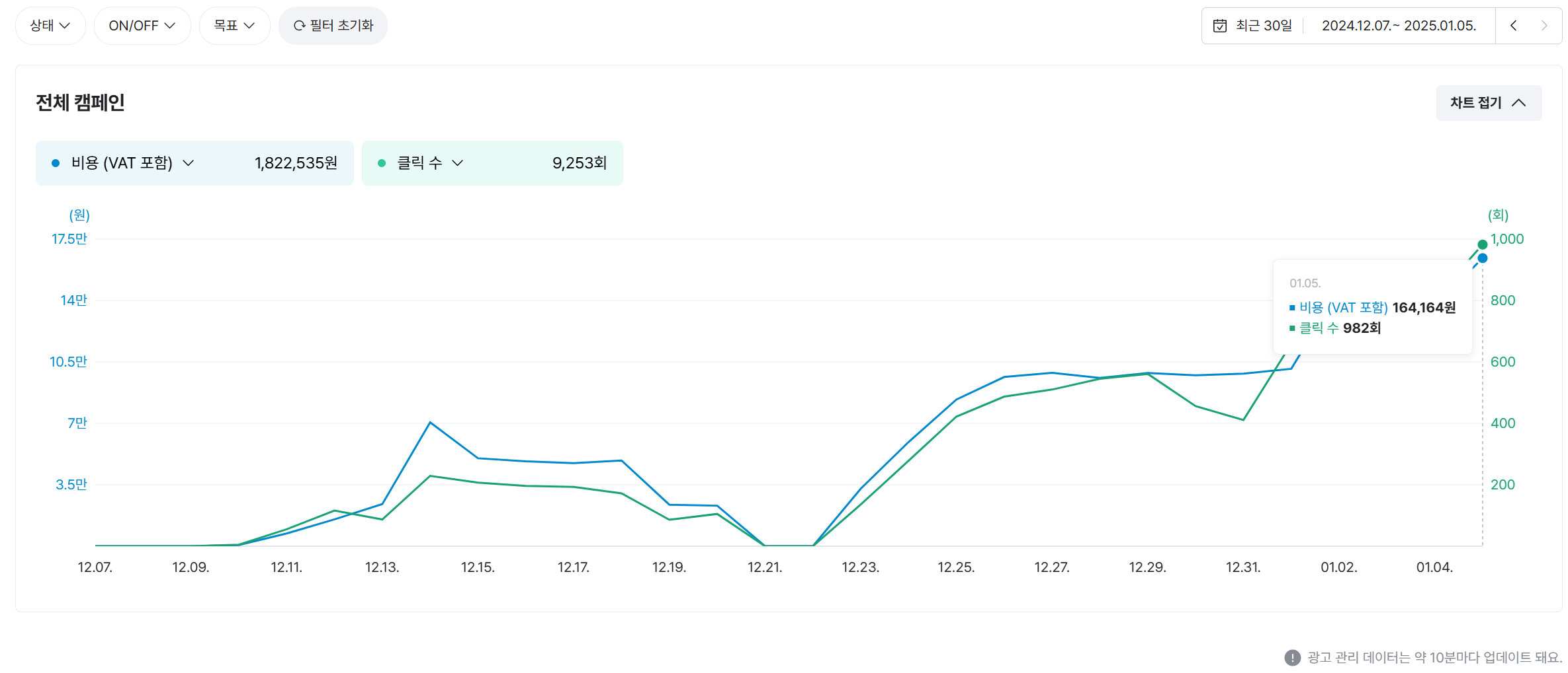 164,164 / 992 = 165원 (cpc 평균 단가) 으로 저렴하게 광고 노출을 집행하고 있다