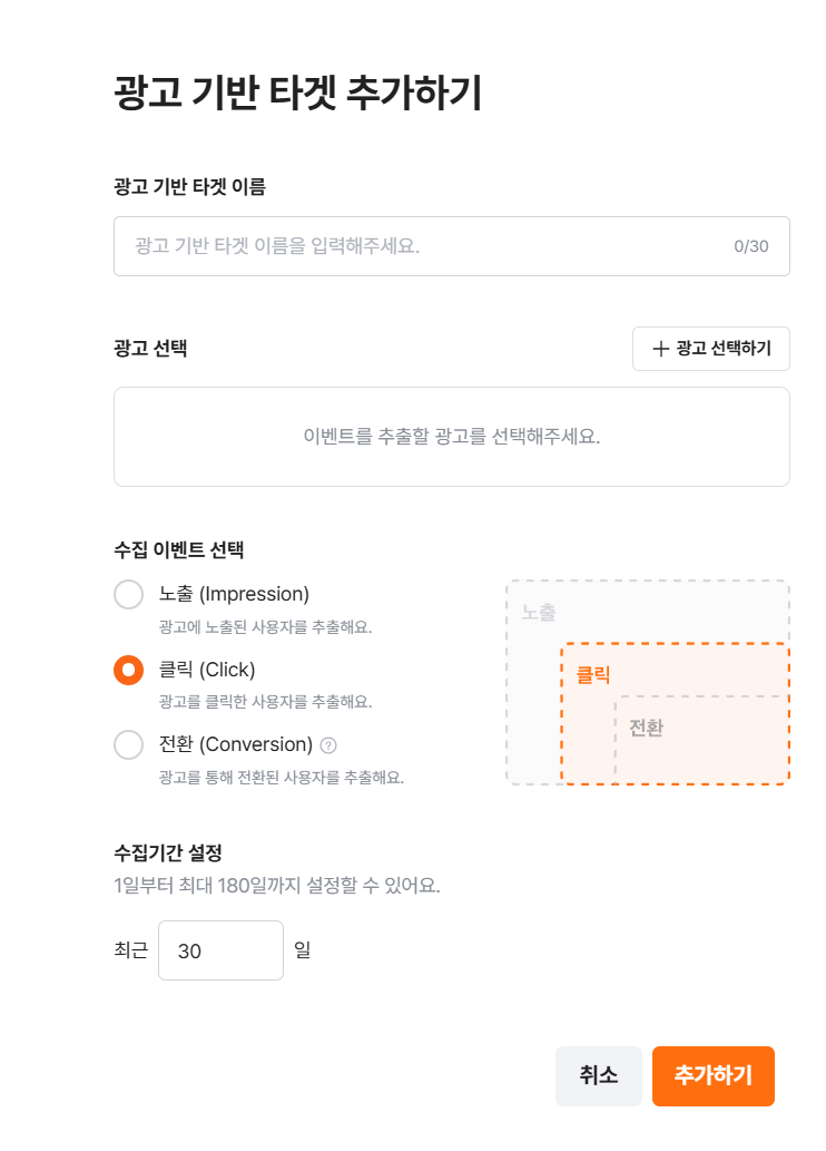 - 하나의 계정에서는 최대 50개의 맞춤 타겟을 생성할 수 있어요.