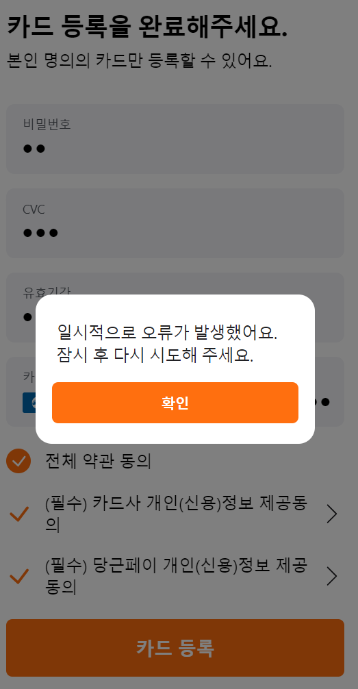 당근 카드 등록 오류 해결 방법