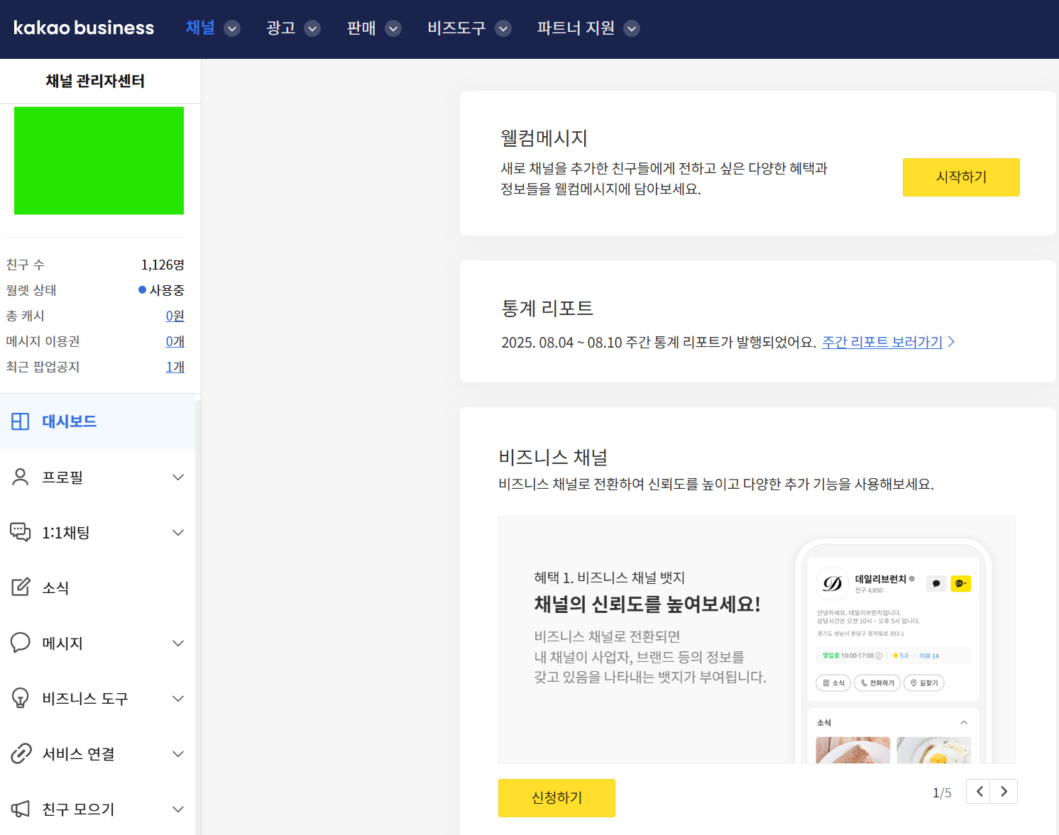 카카오 비즈니스 채널 신청 인증