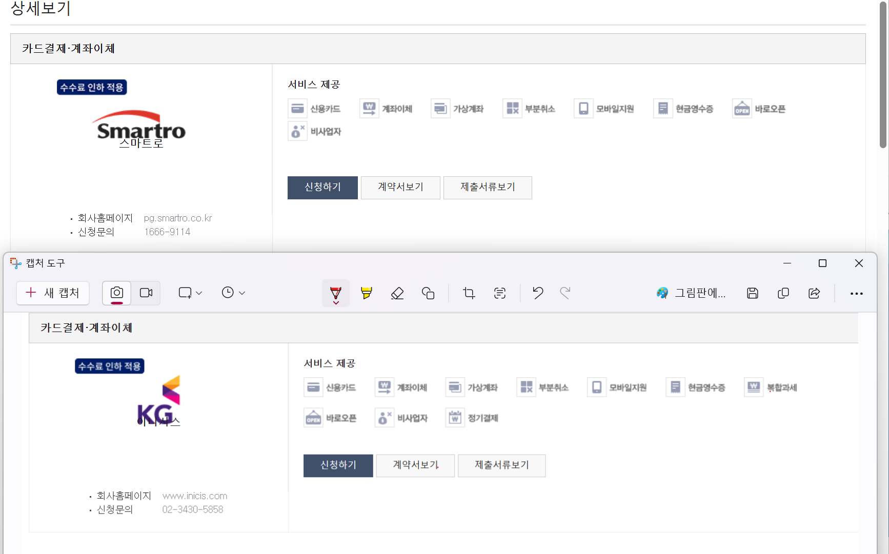 카페24 자사몰 세팅 스마트로 이니시스 PG(통합결제)