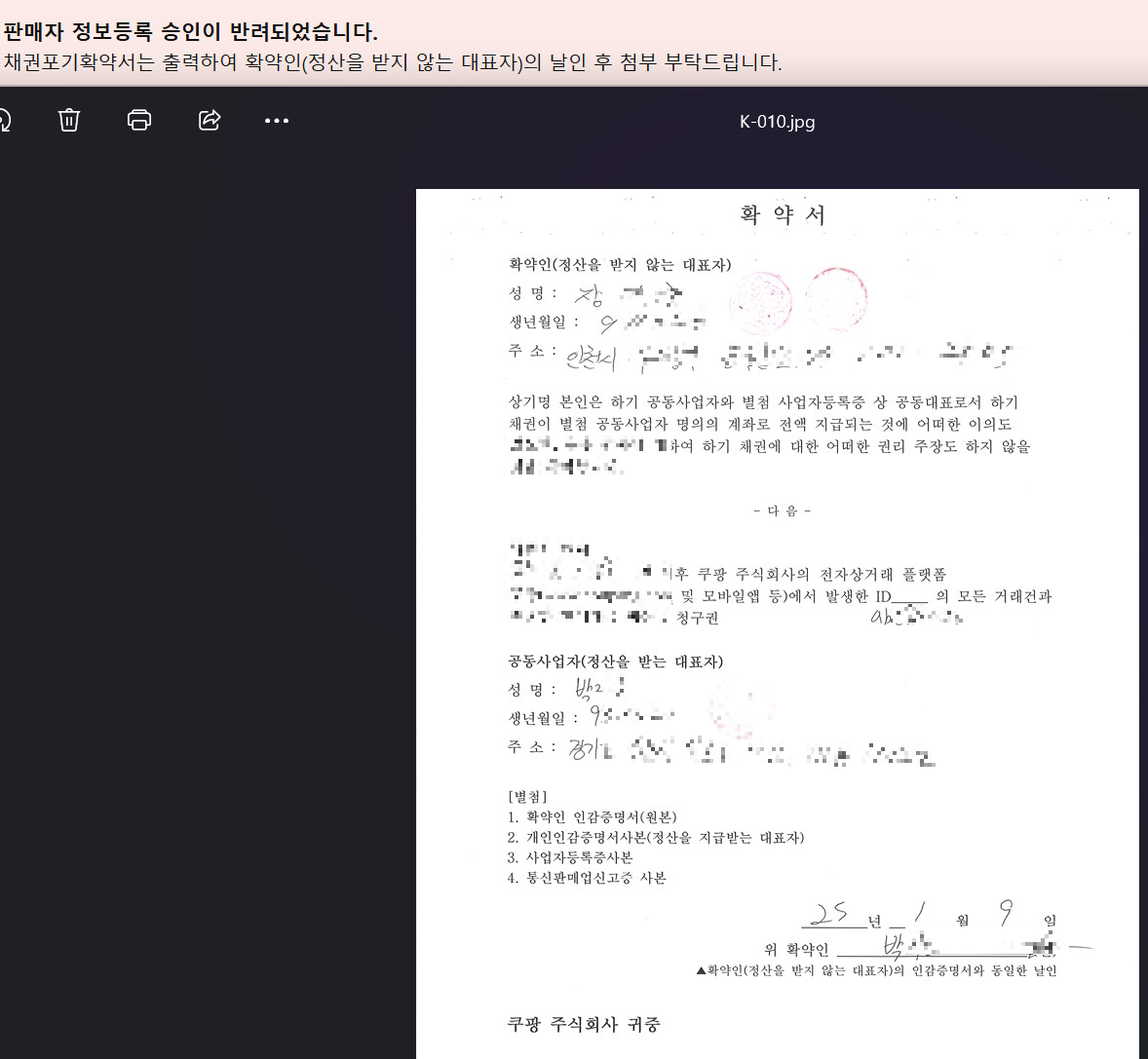 쿠팡 판매자 가입 절차 오류 안내 판매자 정보등록 승인 반려 처리방법