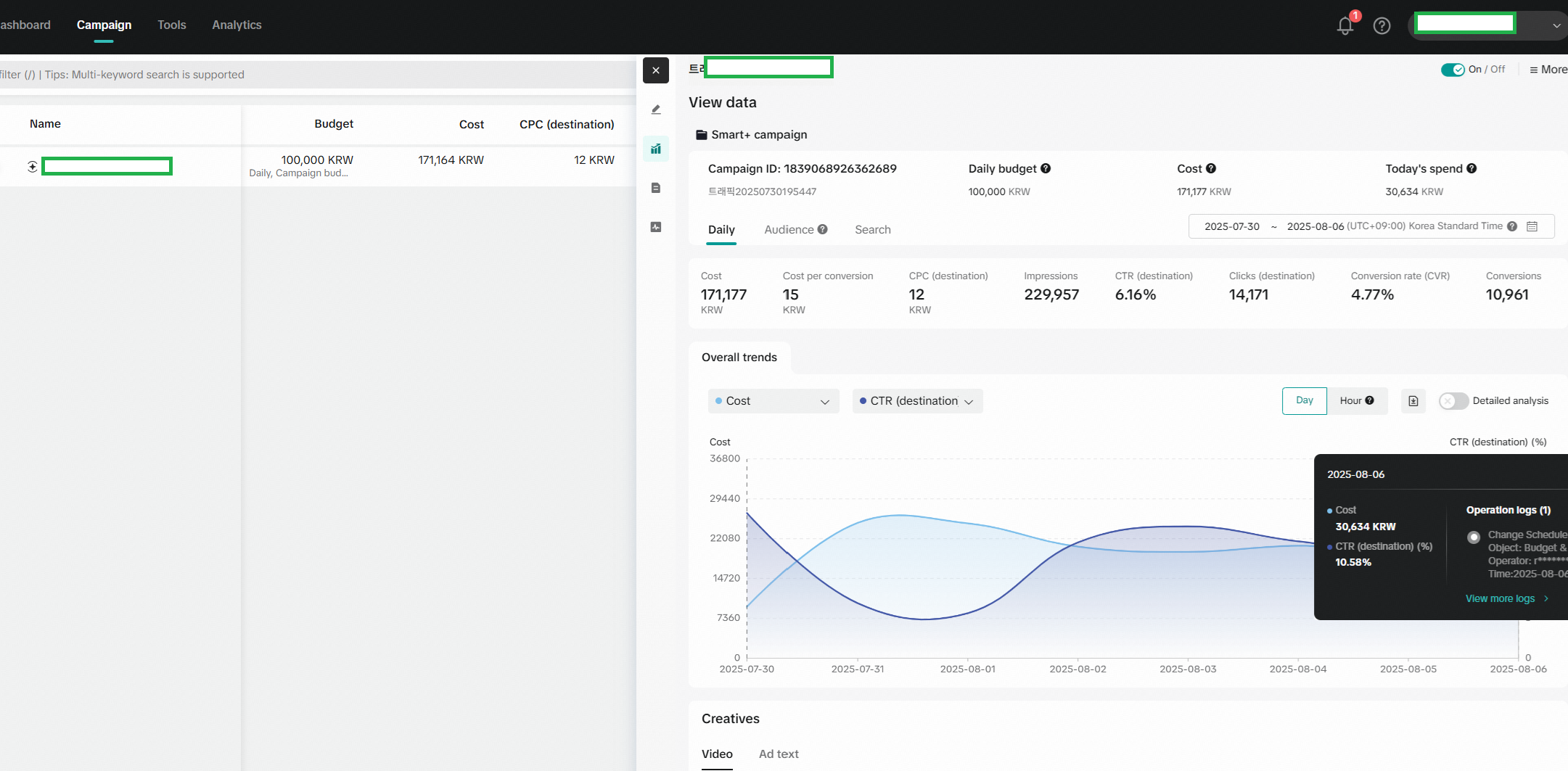 틱톡 상품 요거트 F&B 테스트 cpc12원 / ROAS 959%