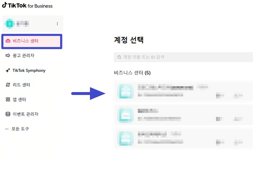 좌측상단 마우스 > 비지니스 센터 > 비지니스 계정 접속 후 확인