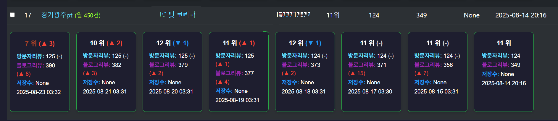 250814 > 250823 (11위 > 7위) 경기광주pt / 경기광주pt (헬스장 운동) 네이버 플레이스