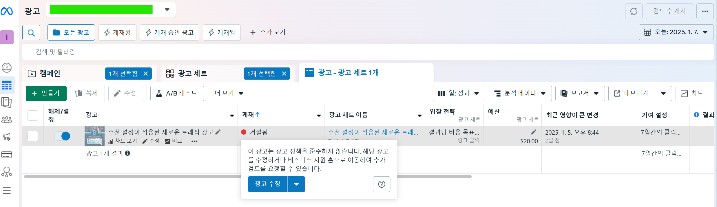 META 메타 인스타그램 (instagram) 페이스북 (facebook) 광고 소재 거절 광고 정책을 준수하지 않습니다.
